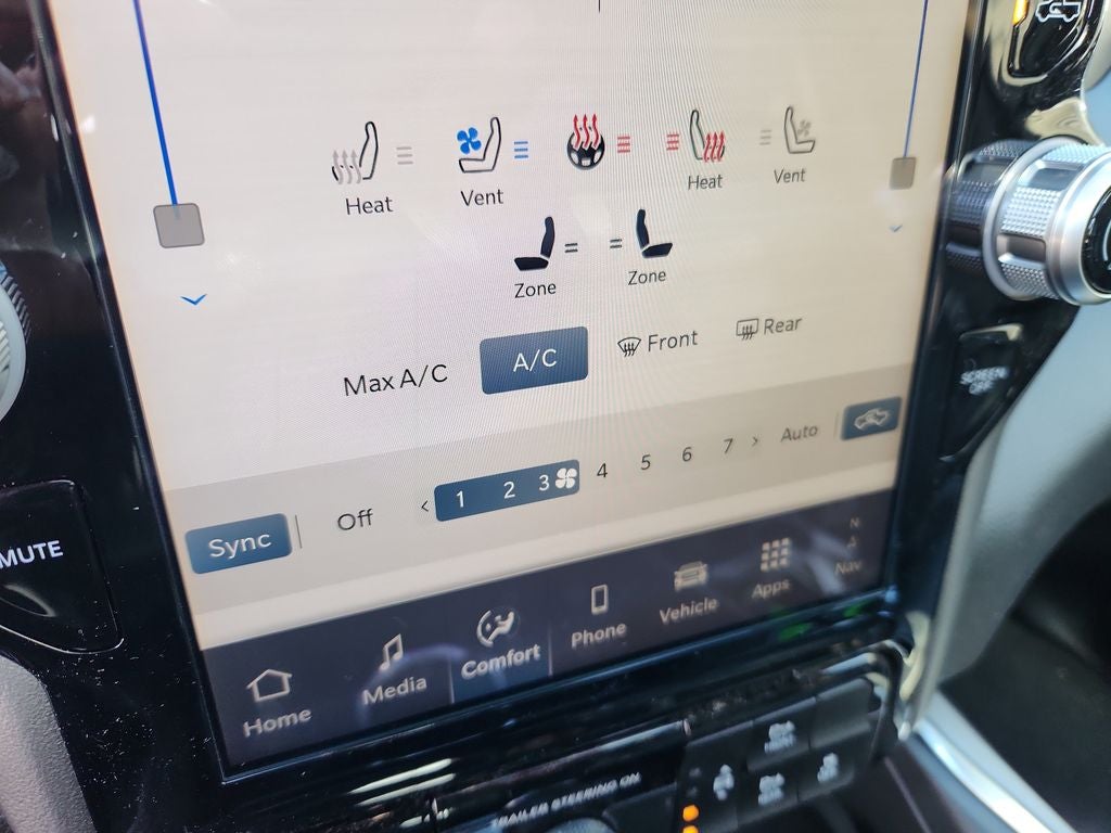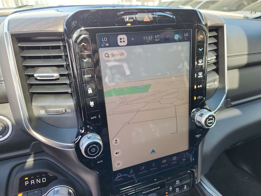 Comfort and convenience are at the forefront of this Laramie's design. The heated and ventilated front seats, along with the heated rear seats, ensure that you and your passengers stay cozy no matter the weather. The power-adjustable pedals and driver's seat with memory settings allow for a personalized driving experience, while the Trailer Tow Group II and Trailer Brake Control provide the confidence and capability to tow your toys with ease.