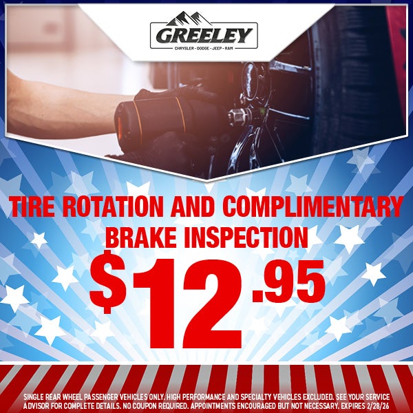 Tire Rotation and Complimentary Brake Inspection $12.95