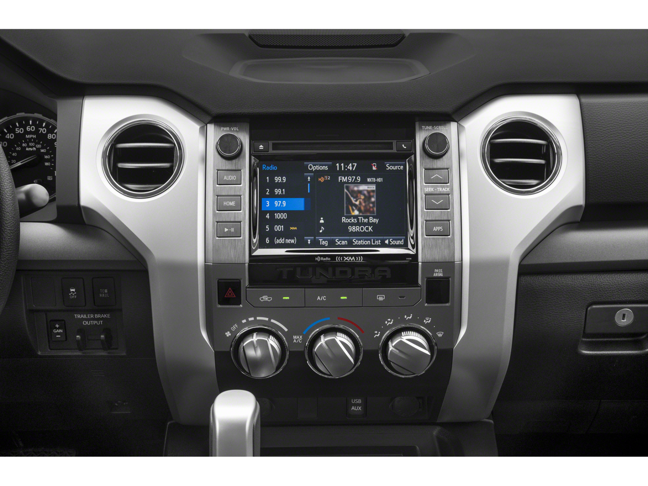 - Radio: Entune Audio Display AM/FM/HD w/CD Player -inc: connected navigation Scout GPS Link app, MP3/WMA playback capability, 6 speakers, 7" high-resolution touch-screen display, auxiliary audio jack, USB 2.0 port w/iPod connectivity and control, Gracenote album cover art, HD traffic and weather in major metro areas, Bluetooth® hands-free phone capability w/advanced voice recognition, phone book access and music streaming and Siri Eyes Free, SIRIUSXM Satellite Radio, complimentary SiriusXM All Access 90-day trial subscription