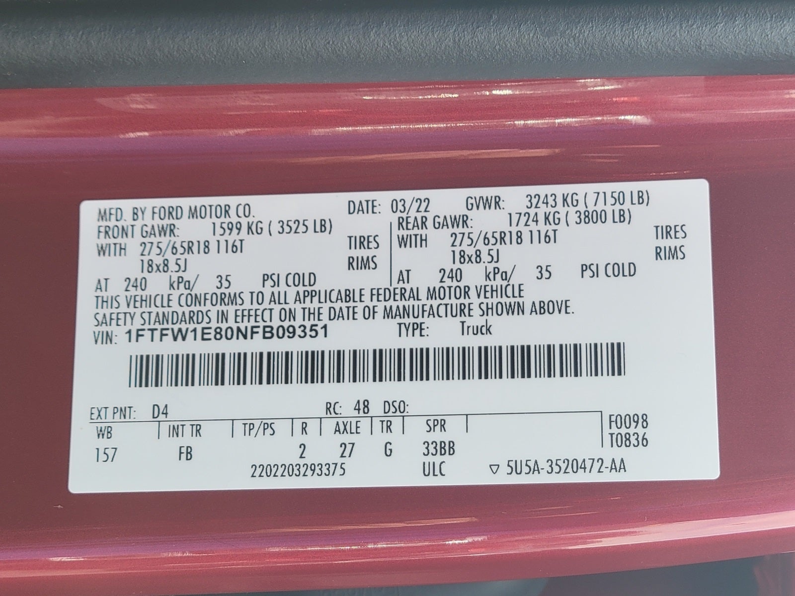 - Vehicle Name: Ford F-150